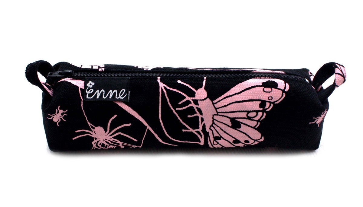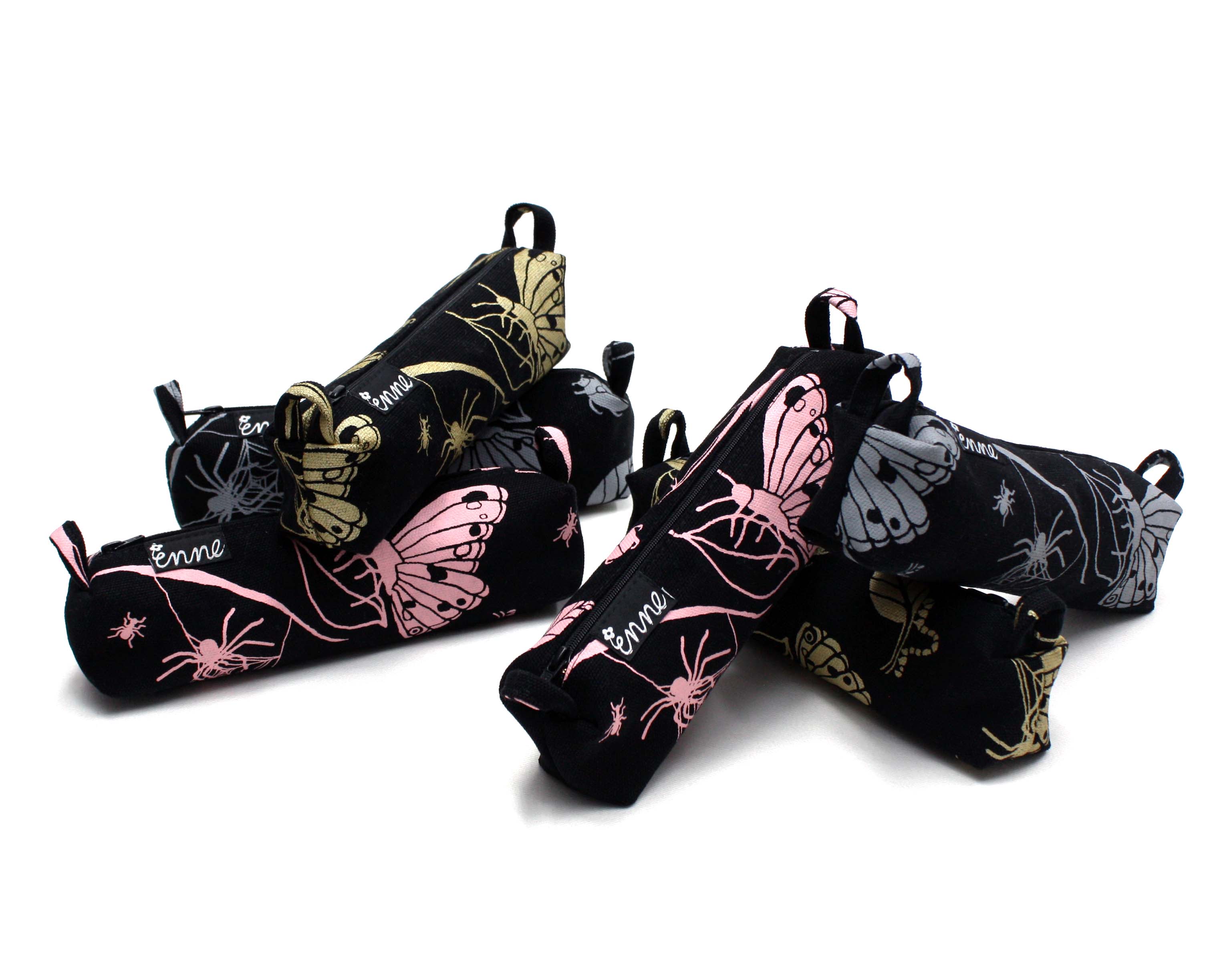 Penaalit on painettu käsin mustalle luomupuuvillalle ja valmistettu kokonaan Suomessa.